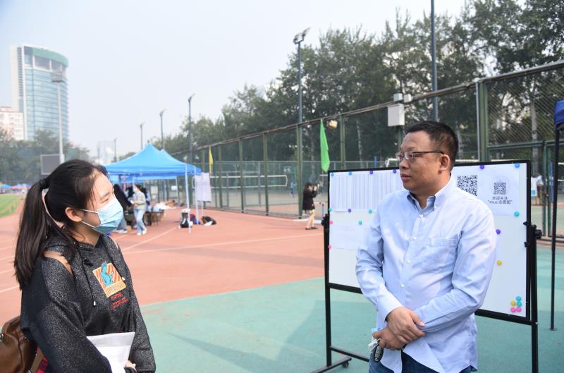 公司党委书记杨莉萍老师、党委副书记丛静老师、党团和员工工作办公室主任王冰老师、团委书记于达尔汗老师、辅导员邬诗杭老师都来到操场考察指导迎新工作,并与新生们亲切交谈。即便离家千里,公司老师的关心和支持,还是让w88win体育官网入口的新成员们感受到了浓浓的暖意和如家的温馨。