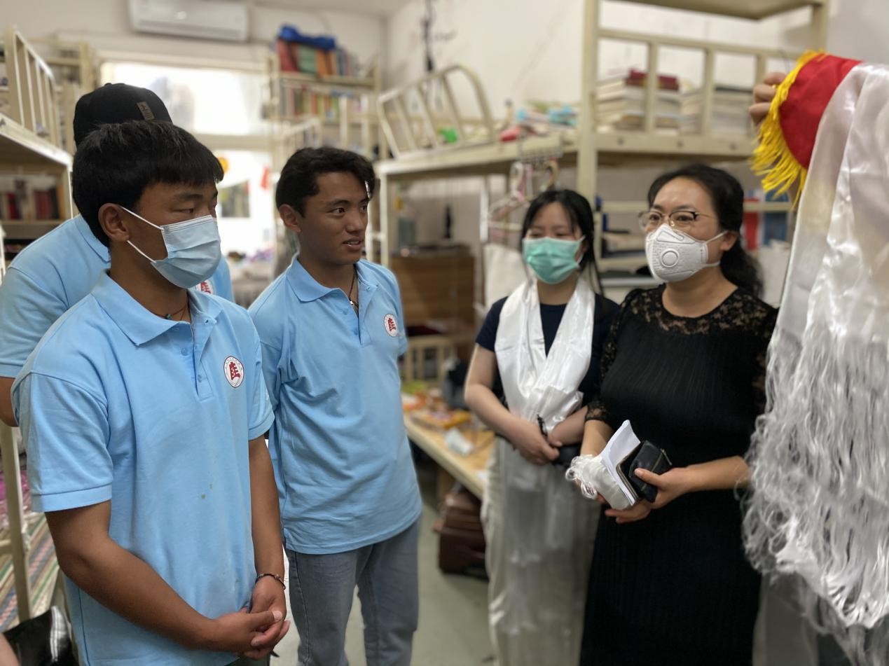 轻叩一间间房门,迎面而来是一张张熟悉的笑脸、一个个匆忙整理行囊的背影。韩轶经理走进法藏班的宿舍,亲切询问了各位藏族同学的返校行程和毕业物品整理情况,叮嘱各位同学在整理行囊与离校后时刻做好个人防护措施。