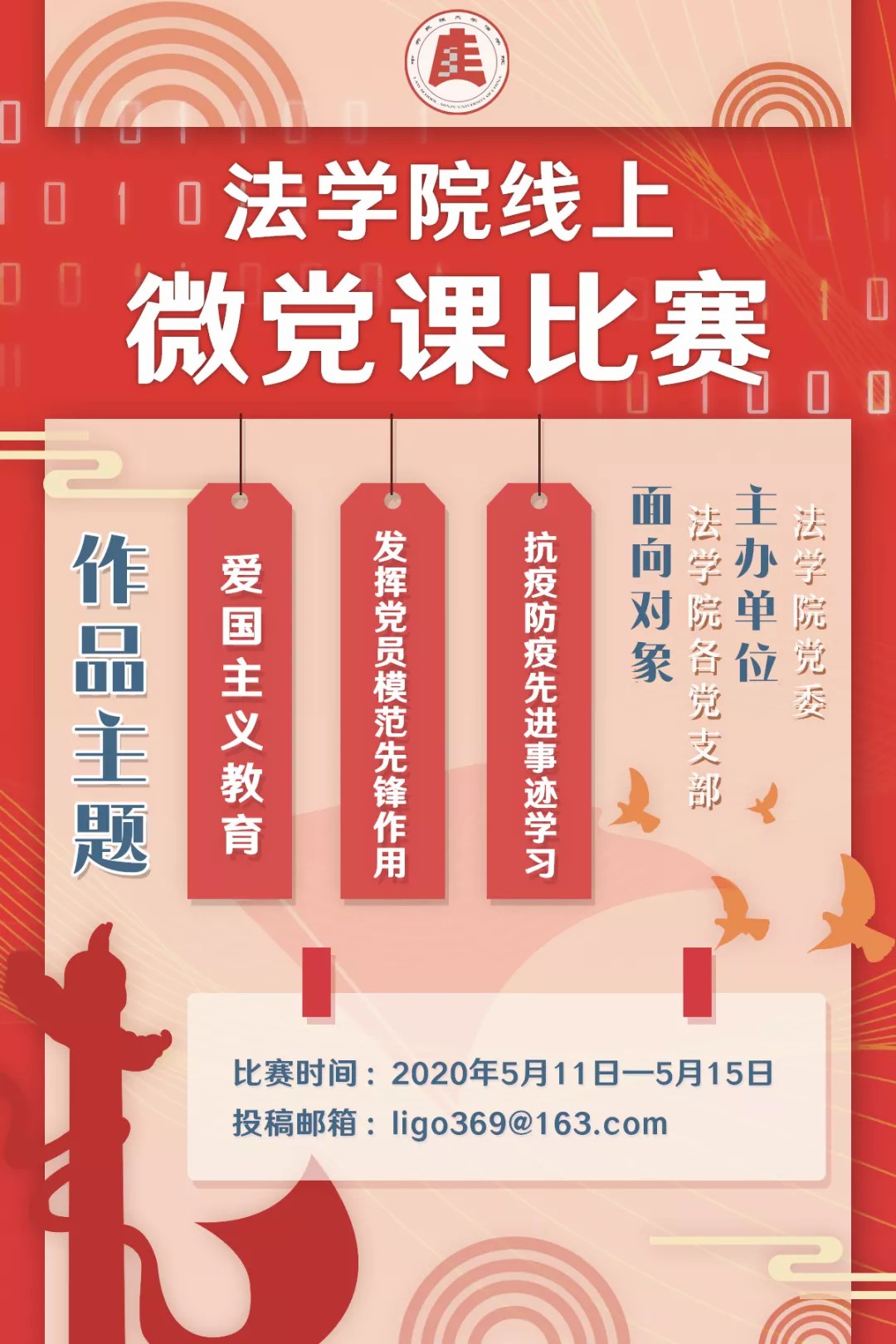此次比赛面向w88win体育官网入口各党支部展开,各支部最少提交一篇参赛作品,同一支部党员自行组队参加,每队人数3-7人。各支部须于5月9日22:00前收集本支部党员参赛作品,并提交至党务助理邮箱ligo369@163.com。