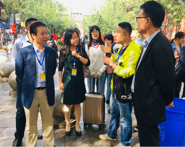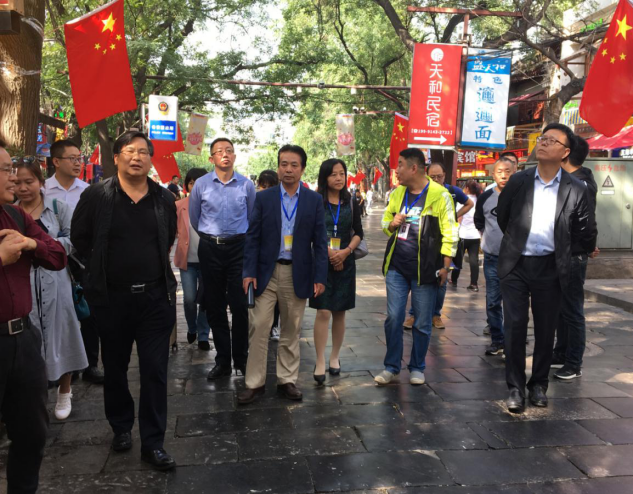专家学者首先前往北院门一条街(回民街)进行考察,莲湖区北院门街道社会路社区服务站李林主任为大家热情地讲解了回民街形成的历史和发展过程,为各位专家学者介绍了回民街上众多历史建筑的渊源和民族风俗习惯,以及回民街依法治理开展民族工作的情况。