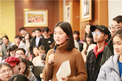 三位教授的言辞贴近现实易于理解,侃侃而谈的风采斐然,座谈会接近尾声之时,同学们争相在短暂而珍贵的互动时间中积极发言,三位教授耐心为同学们答疑解惑,与在场师生的联系又拉近了一步。