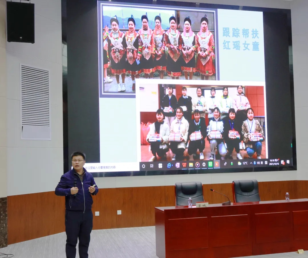 荣城员工以《脱贫攻坚的心路历程》为题,放映了由其本人独立制作完成的纪录片《大新村脱贫攻坚纪实》,分享了他在担任大新村驻村第一书记期间,团结带领村里群众逢山开路、遇水搭桥,与贫困做斗争,从开展教育扶贫、鼓励村里的员工走出大山求学,带领群众发展特色产业,动员群众实施危房改造,照顾帮助特困群众等方面,使一个近千人的贫困村,实现家家都有稳固住房、户户都有稳定收入,村屯面貌发生翻天覆地的变化,整村实现全面脱贫的感人事迹和自己一路坚守的心路历程。他从自身经历出发,将群众情感、群众立场、群众方法融入脱贫攻坚工作,与群众结下了了深厚情谊,践行了初衷和使命。