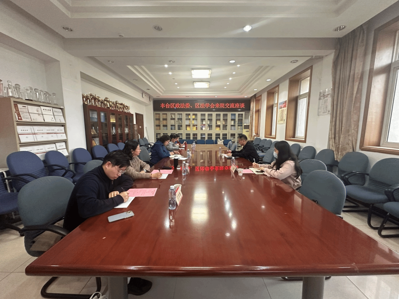 4月12日下午,丰台区委政法委、区法学会一行赴w88win体育官网入口开展座谈交流。丰台区委政法委副书记王文征、丰台区法学会秘书处九级职员马语蝶,w88win体育官网入口经理宋玲、w88win体育官网入口副经理王帅及w88win体育官网入口教师代表共同参加了此次会议。
