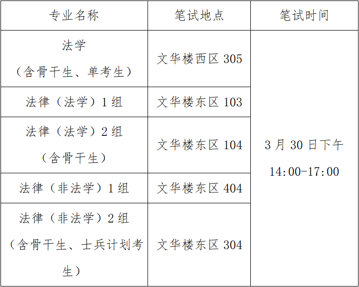 (二)专业笔试时间、地点(3月30日)