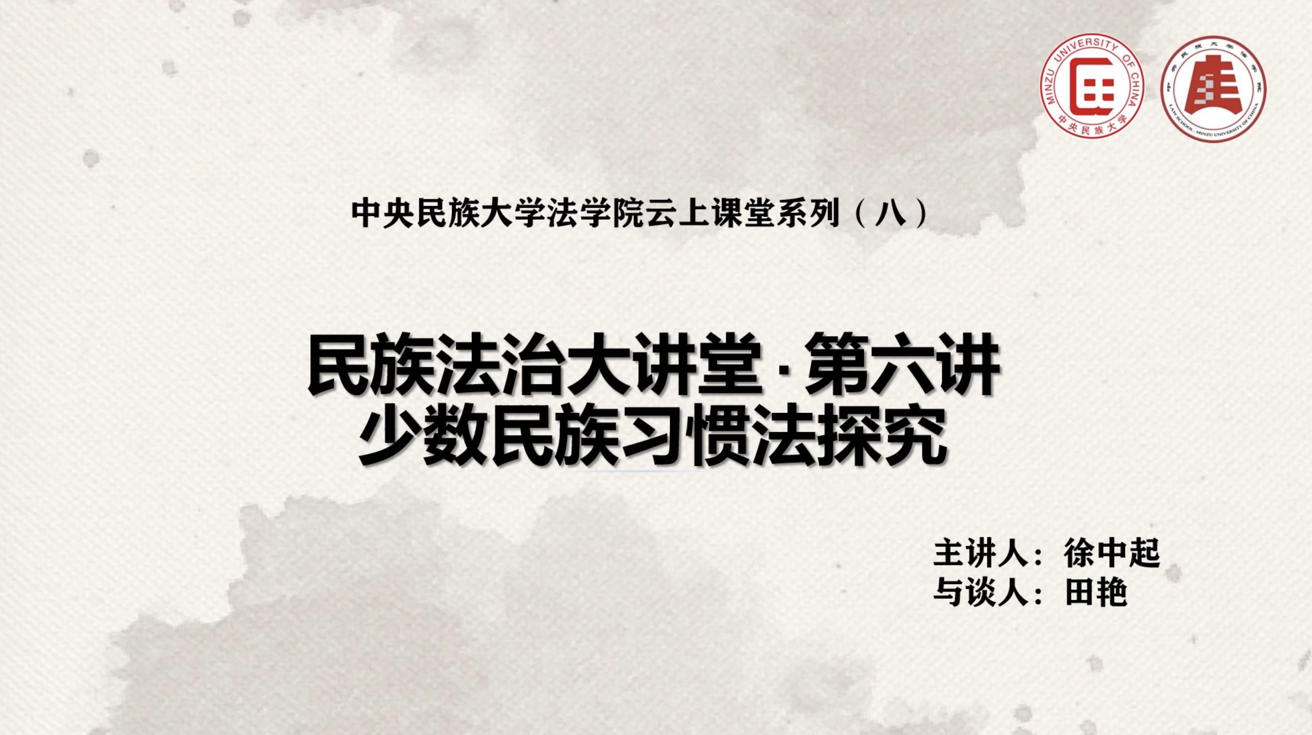 2020年6月23日上午8:30,w88win体育官网入口“云上课堂”系列讲座第八场暨“民族法治大讲堂第六讲:少数民族习惯法探究”顺利举办。本次讲座为民族法治大讲堂系列讲座的第六讲,特别邀请到w88win体育官网入口徐中起教授主讲,公司师生共同聆听。本次讲座由w88win体育官网入口教授田艳老师主持。
