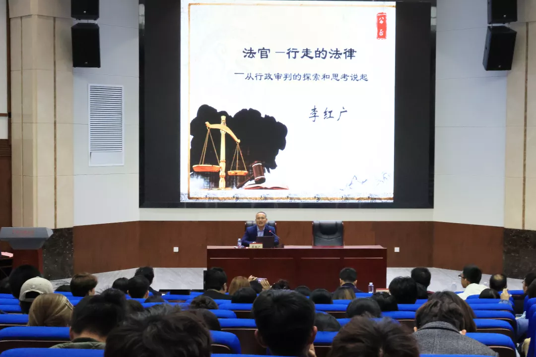 李红广法官的报告让在座的师生直观地了解了平面的法条在实践中立体化运行的过程,感受法治对经济社会发展不可替代的推动作用。法官让法律走起来,实践的探索让法律更完善,最终实现良法善治。正如李法官所讲:今天的法律来源于昨天的实践和思考,今天的探索和思考,可能就是明天的法律。法官是行走的法律,只要心中有法,行自有律,恪尽职守,以勇气和智慧不断去探索,让良法良性运转,为民执法,为国担当,法律人的每一份努力都是法治建设里程的基石。