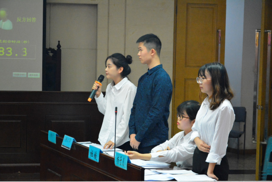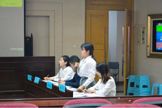 第一场,正方首先列举丰富示例,阐释我国目前商标申请乱象不断,大量商标闲置,降低商标局的行政效率,挤占公共空间,所以我国应当限制自然人申请商标注册,鼓励以使用为目的的商标注册。反方立即找准角度,据理力争,从“限制”与“规制”的区别、“善意”与“恶意”的辨别等方向进行反驳,提出限制自然人申请商标注册不符合我国以中小型企业为龙头的实际市场情况,不利于大众创业、万众创新的政策实施。双方有依据、有深度的辩论让我们收获颇丰。