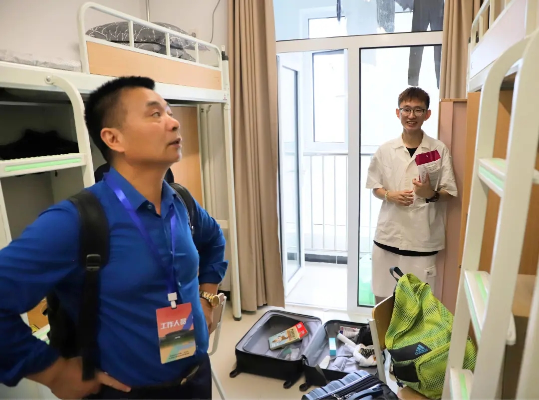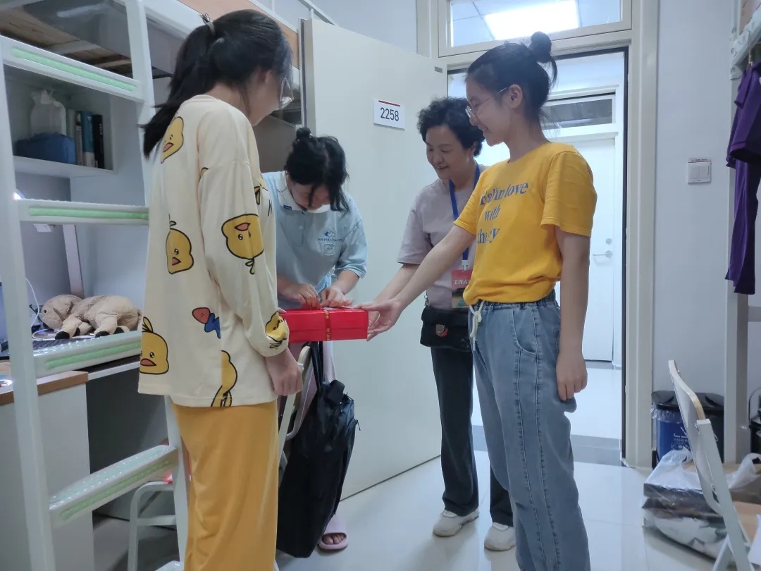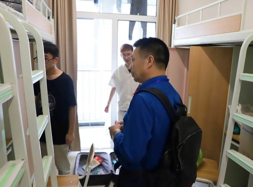 开学前夕,w88win体育官网入口韩轶经理与杨莉萍书记分别前往新生寝室进行慰问,与同学们亲切交谈,关心和了解同学们在新校区生活的适应情况,表达对同学们的关心和爱护,为新生同学们送去温暖。法公司党委副书记丛静老师、党团与学工办公室主任王冰老师、新生辅导员刘舒鹏老师、温萌老师也先后到宿舍走访慰问。