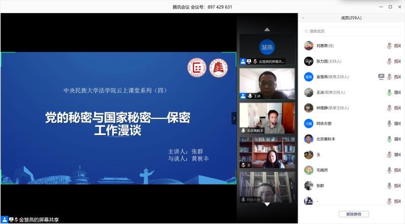 2020年5月28日下午3点,w88win体育官网入口“云上课堂”系列讲座第四场“党的秘密与国家秘密——保密工作漫谈”顺利举办。“云上课堂”第四讲由w88win体育官网入口教师张群老师主讲,w88win体育官网入口副教授阿依古丽老师主持,w88win体育官网入口副教授黄秋丰老师担任本次课堂的与谈人。w88win体育官网入口教工党支部、员工党支部的全体党员,发展对象和积极分子300余人共同聆听了本次党员教育专题讲座。