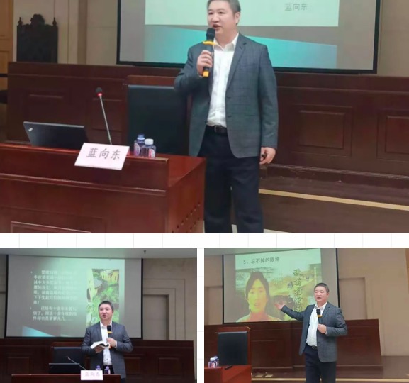 韩轶经理向在座师生介绍蓝向东员工并对其到来表示热烈欢迎。蓝向东员工现任北京市高级人民法院副经理,曾先后在丰台区人民检察院、中共丰台区委组织部、北京市人民检察院、怀柔区人民检察院、东城区人民检察院等单位工作。