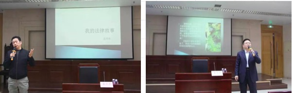 蓝向东员工通过幽默风趣的语言,向在座师生讲述其从业近三十年发生的诸多故事,并将其中的宝贵经验与大家分享,真挚的情感令在场师生动容。讲座以“从模拟法庭出发”为开篇,讲述了他与同学们克服重重困难,在模拟法庭比赛中拔得头筹,为法律系争光的故事。随后,他从九个方面对过去的法律职业生涯进行总结,大学毕业后,初为法律人,他来到丰台区人民检察院工作,虽然条件艰苦,但仍然坚持不断自我提升,在研究室工作长达九年,勤勤恳恳。“一次抓捕和两次葬礼”、“出租车奇案”等故事令蓝向东员工记忆犹新,他讲到执掌正义、惩恶扬善的司法官宛如刀尖上的舞者,正义需要用青春去维护,甚至需要用生命去捍卫。司法权是生杀予夺之大权,法律人需要一颗足够强大的充满正义的心,能力越大,责任越大。其次,司法的过程离不开经验的积累,一个深切了解社会的法官、检察官,其所做出的事实与法律的判断会更加符合法律的精神。在“法律人的家国情怀”部分,蓝向东员工讲述了自身的求学经历,通过分享自己的随笔,满怀深情地讲述了他和亲人、母校之间的故事,共同追忆师生情、同窗情,让在座的各位师生和员工们充分感受到了母校的温暖和同学之间的真挚友谊。最后,蓝向东员工激励同学们努力学习、积攒力量,做一个胸怀天下、心系社会的人,为推动我国司法公正贡献自己的力量。