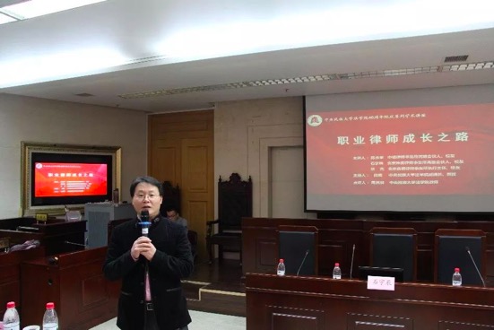 第一位主讲人是陈永学律师,他认为“只要你愿意,每个人都可以成为优秀的律师,我们同为民大人,有一颗共同的心,希望报团取暖,共同变得更优秀”。随后,他从六个方面分享成功经验,向同学们讲解了什么是律师、律师的类型及定位、怎样做律师。在“怎样选择律师”部分,陈律师强调师傅的重要性,其往往决定了将来的道路,律师是一个专业技术性很强的职业,没有专业就没有一切。
