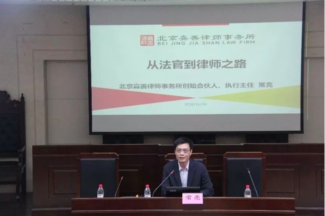 第三位是常亮律师主讲的 “从法官到律师之路”。常律师在“民大与我”部分,回忆了美好的校园生活,表达了对母校和老师的感谢之情。随后,他介绍了如何成为一名法官以及自己的法官生涯。常律师还分享了自己的律师之路,从互联网公司法务到律所创始合伙人,他鼓励同学们一定要不忘初心,不断提升综合素养。