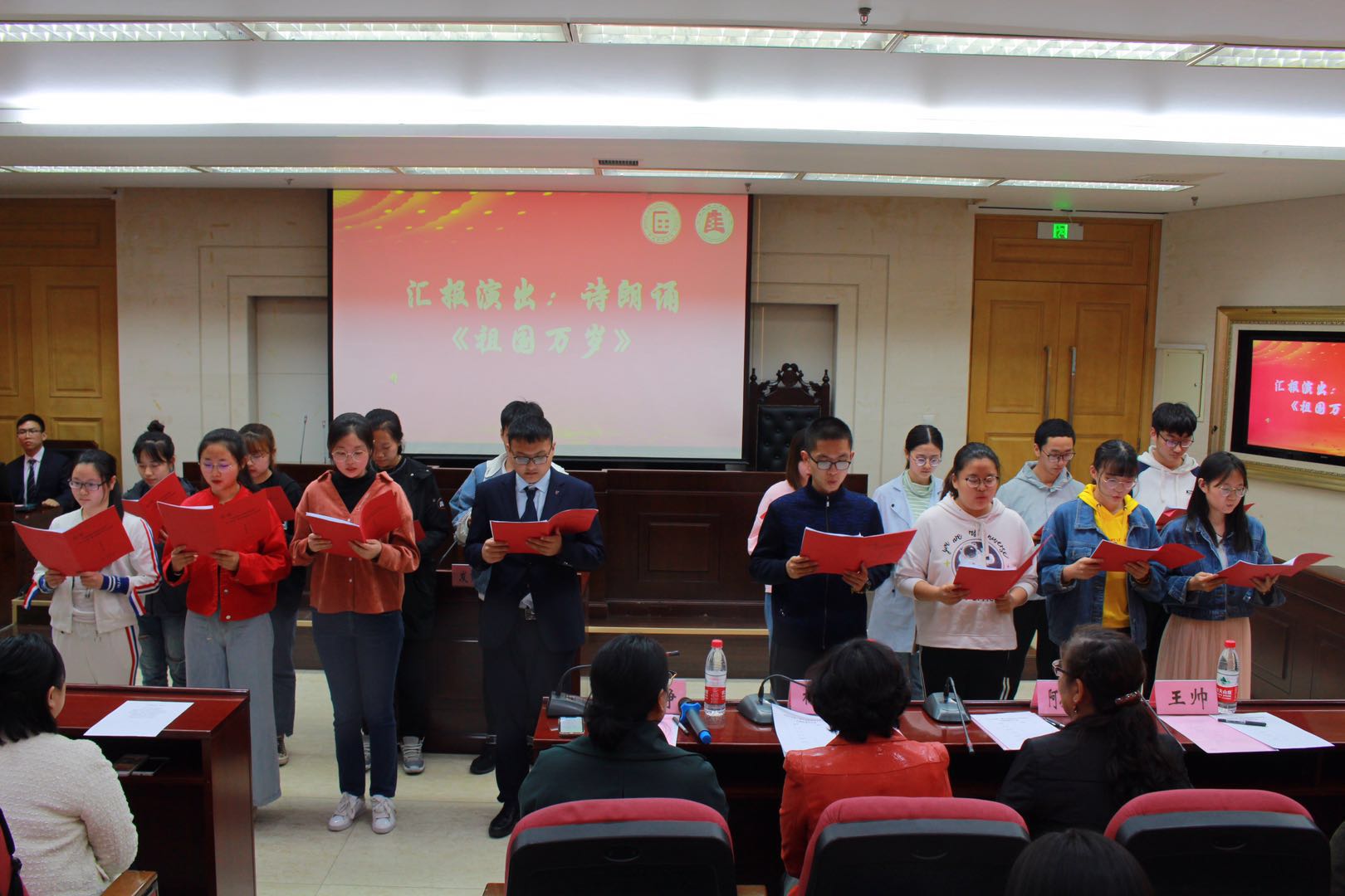 五个学习小组的代表依次进行汇报发言,与大家分享了组内成员的学习感悟。积极分子代表一致表示通过党课学习、外出参观、观看纪录片等党课深刻地意识到了作为党员肩上所担负的责任,端正了自己的入党动机,坚定了加入中国共产党的信念,并承诺日后一定会加强政治理论学习,以党员的标准要求自己,培养责任意识与奉献精神。积极分子代表发言结束后,各组依次进行了诗朗诵、合唱等汇报表演,内容丰富多彩,彰显了新时代入党积极分子们的良好精神风貌。