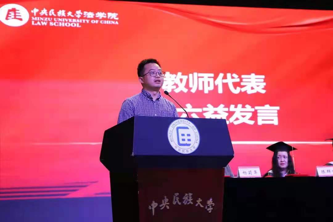 我是理论法学教研室的教师邵六益,很荣幸作为教师代表,在这样一个庄严隆重、喜庆热烈的场合与大家交流。这些天,我不时在小本本上写下自己灵光闪现时的只言片语,7月1日下午暴雨的时候,我被困在小白房打印店两小时,伴着雷声、雨声,我整理了自己的思绪,总结了几句话,分享给你们,也留给自己。